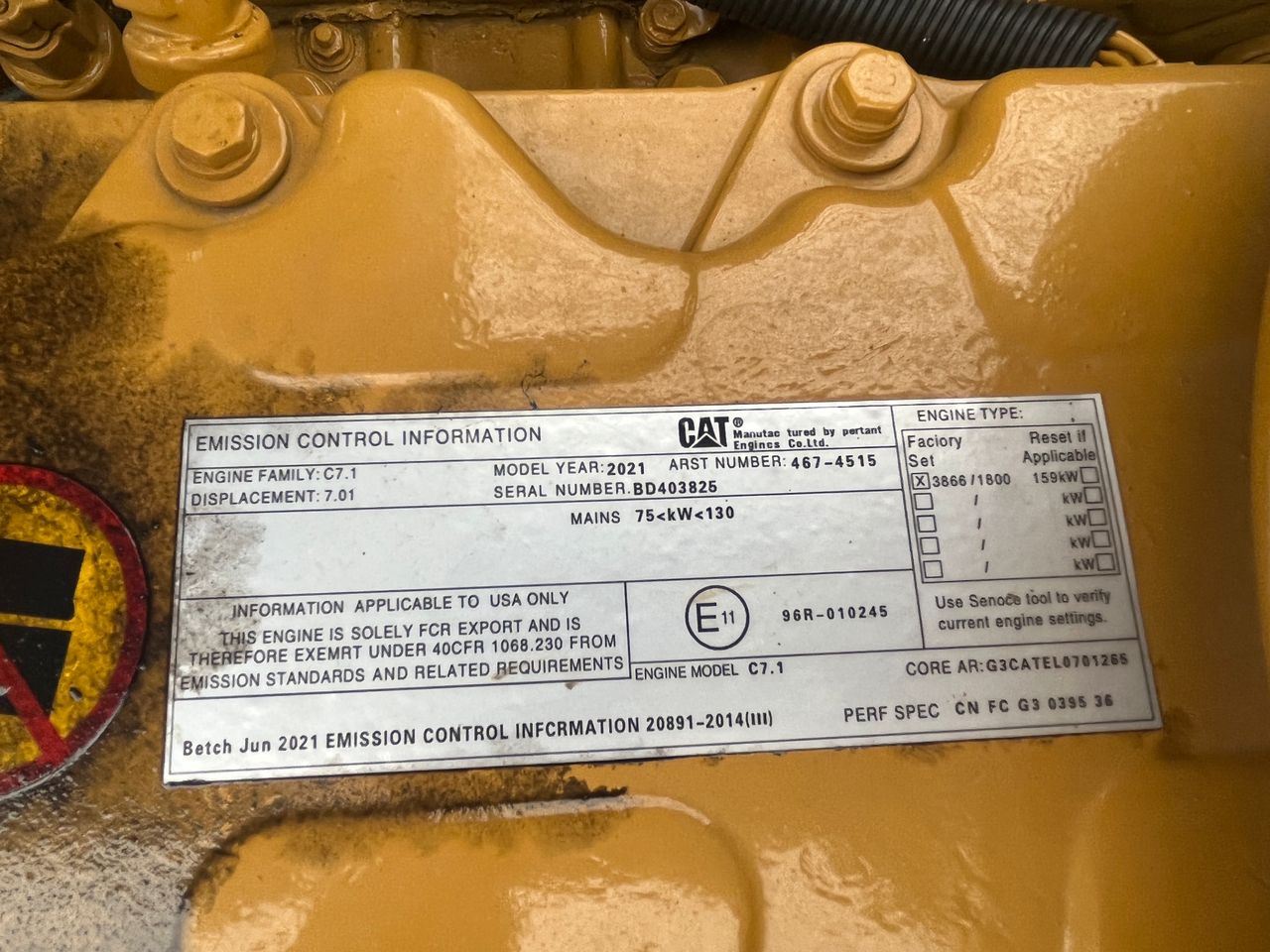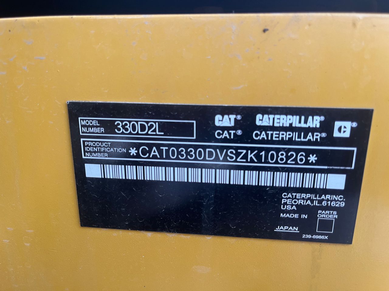 | Serial No. | CAT0330DVSZK10826 | Engine No. | 010245 |